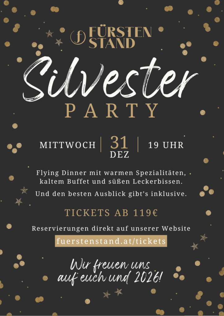 Entdecken Sie unsere aktuellen Veranstaltungen am Fürstenstand – von kulinarischen Highlights bis hin zu stimmungsvollen Festen. Mit nur einem Klick auf das jeweilige Bild können Sie Ihr Ticket bequem online sichern.